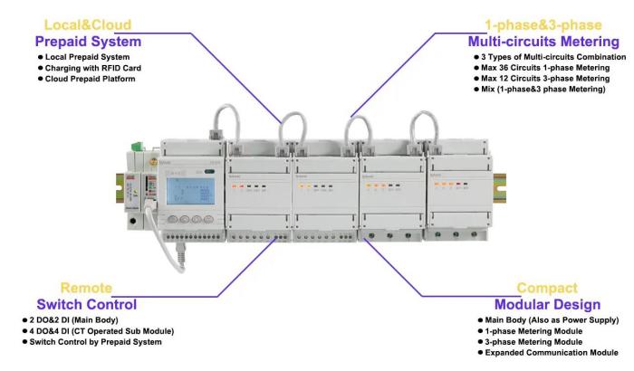 The ADF400L series multi-user energy meter can achieve up to 12 three-phase or 36 single-phase direct access measurements through a combination of modules, or 12 three-phase inductor access measurements, or a combination of direct access and transformer access. This series of electric energy meters is preferred by communities, schools, companies, etc. Due to its high precision, centralized installation, centralized management, high installation flexibility and non-interference. This series of meters supports prepaid functions.