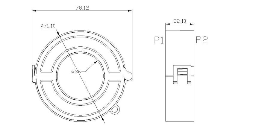 Dimensions of current transformer 80A/26.6mA and 120A/40mA: