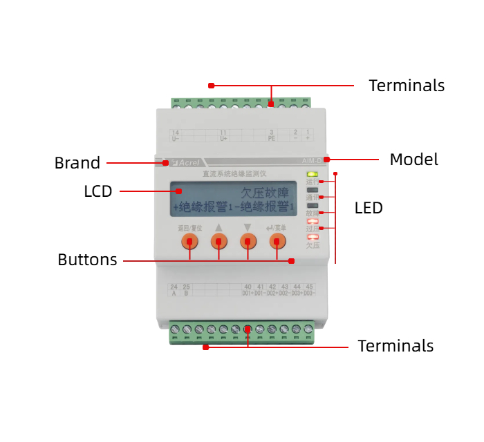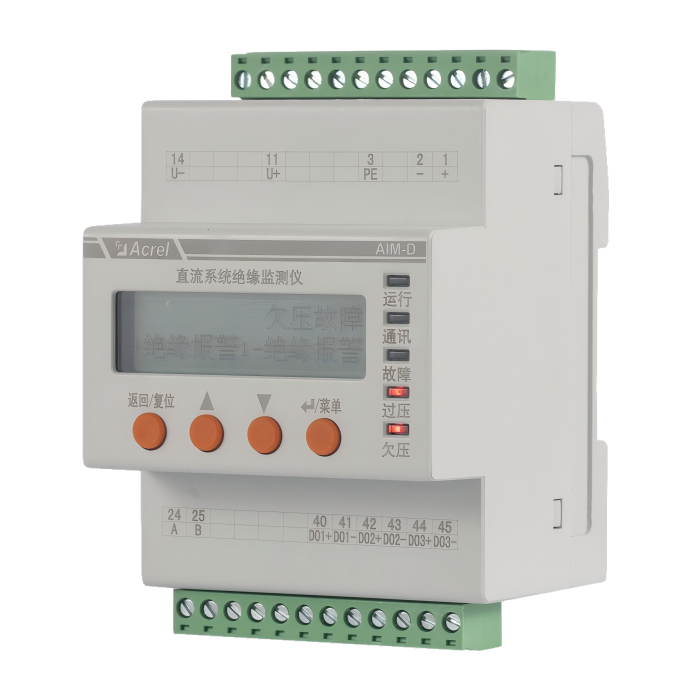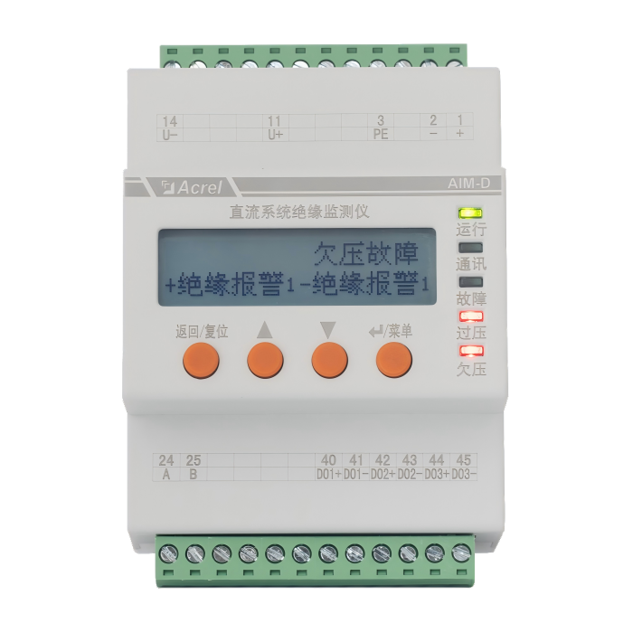 AIM-D100-T series DC insulation monitoring device can be applied in 10 ~ 1000V DC systems for online monitoring of insulation resistance of positive and negative poles of DC ungrounded system, and sending warning or alarm signal when the insulation resistance is lower than the set value.
