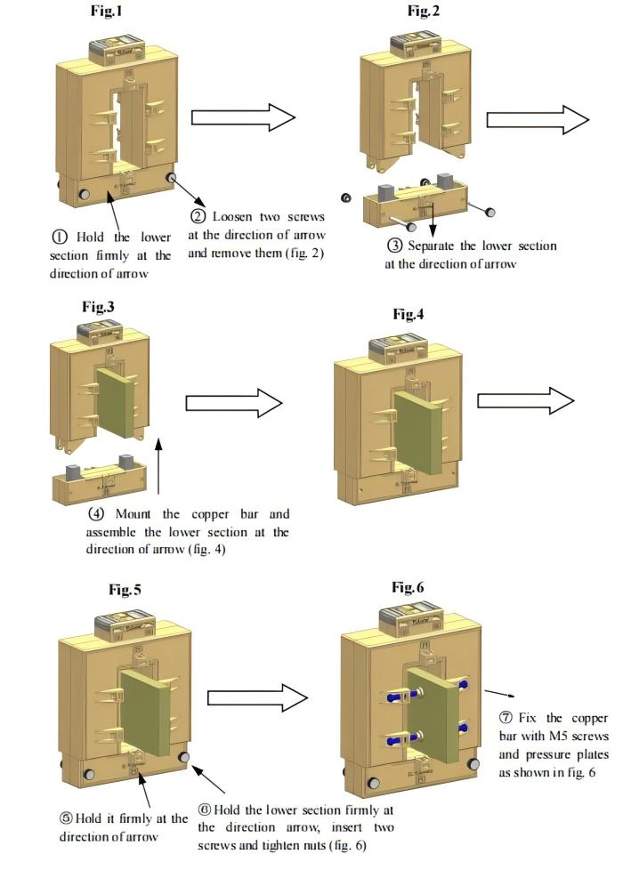 AKH-0.66/K series split current transformers are mainly used in urban and rural power grid renovation projects. They are easy to install. There is no need to remove the primary busbar and can be powered to avoid affecting normal power consumption. It saves manpower, material and financial resources for users and improves efficiency. This series of products is used in conjunction with metering, measurement and relay protection equipment..