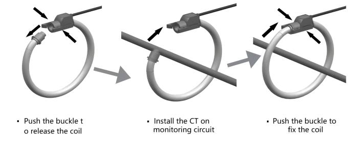 Note: Before installing the Rogowski CT into monitoring circuits, youshould firstconnect the Rogowski CTwith the paired power meter.
